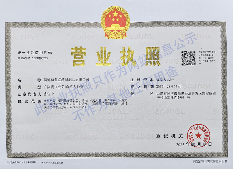 淄博新业盛塑料制品有限公司成立于2017年8月3日,是一家充满活力与创新精神的企业。公司位于淄博市张店区,地理位置优越,交通便利,为原材料的采购与产品的运输提供了便利。
